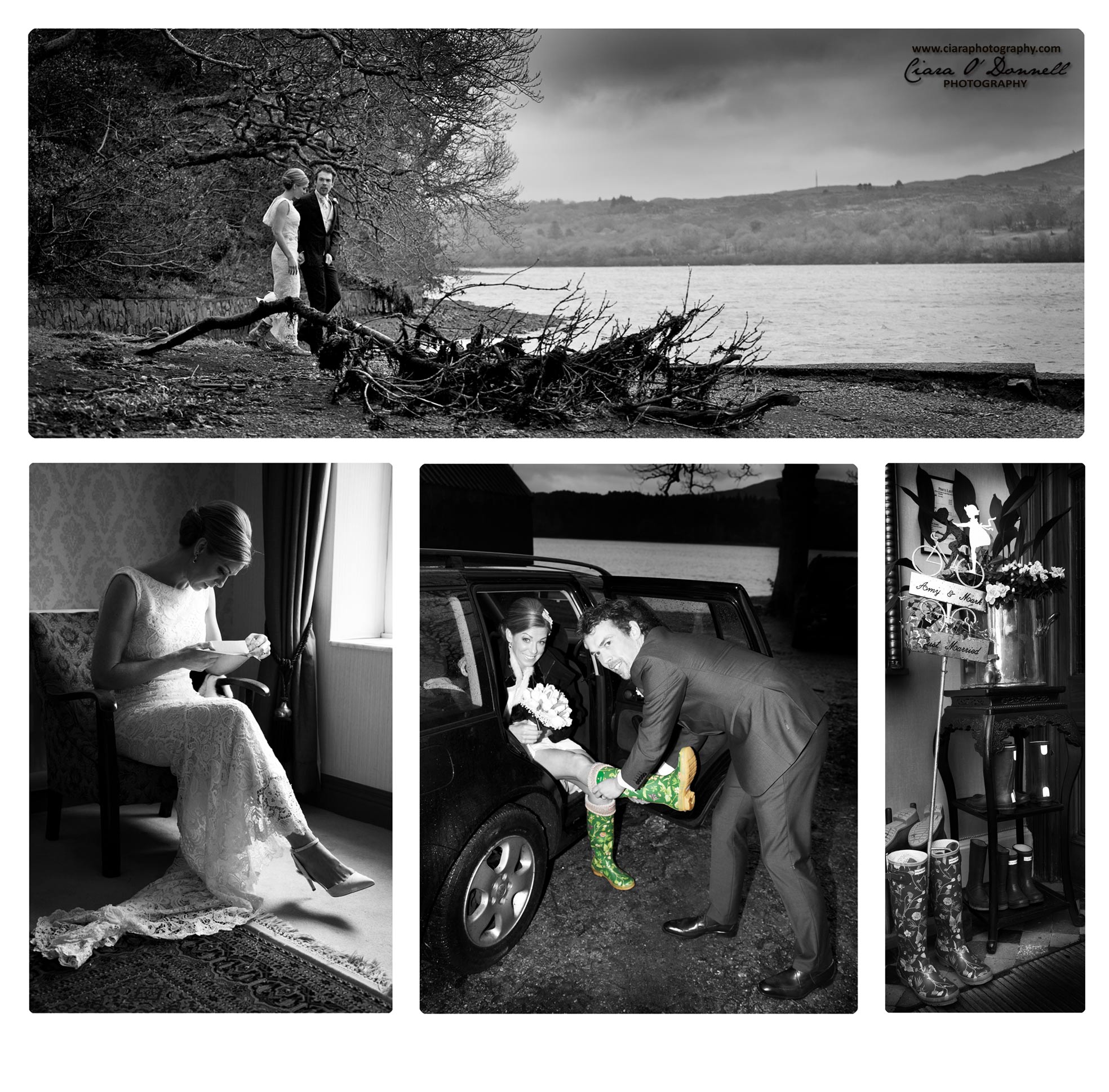 But we were good to go with our plan. Rain might be playing a part in the day but that’s the norm in Ireland. Thanks to the upbeat nature of the couple and their families I knew the day would work out all right. And so it did. Wellies and brollies at the ready we braved the weather and dodged the rain.