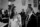 Husband and wife stand turning back to the camera in front of Ballyseede castle, Tralee.