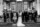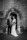 Black and white portrait of husband and wife smiling at the camera at Ballyseede castle, Tralee.